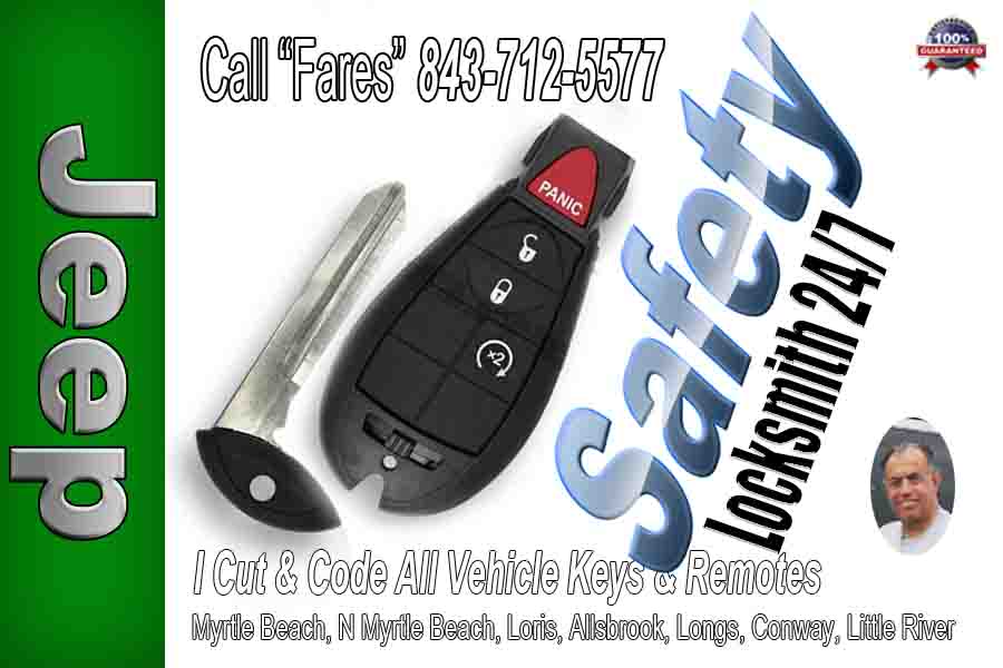 Jeep Locksmith North Myrtle Beach – Safety is a full service Home Commercial and Car Key specialists. We Code all brands of vehicles. Call Fares (843) 712-5577
